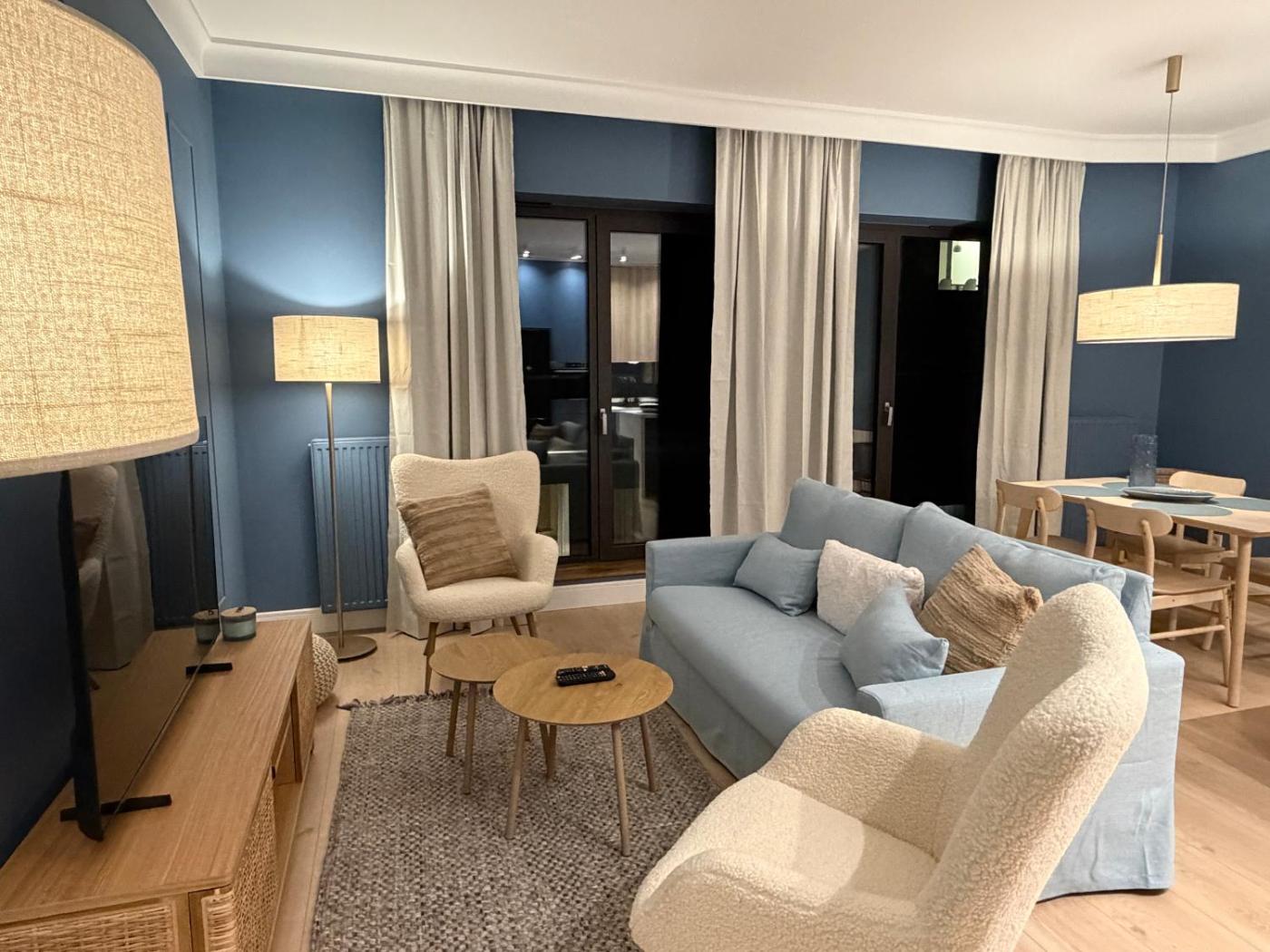 Oferta apartamentu obejmuje sypialnię (1), salon, aneks kuchenny z pełnym wyposażeniem, w tym lodówką i ekspresem do kawy, a także łazienkę (1) z prysznicem oraz suszarką do włosów. W apartamencie zapewniono ręczniki i pościel.