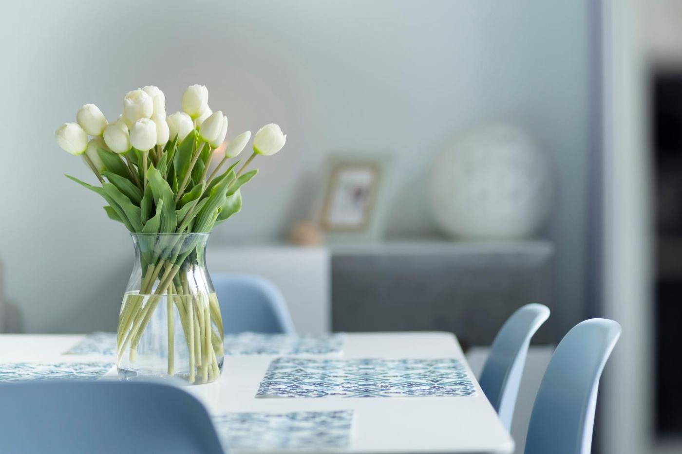 Oferta apartamentu obejmuje sypialnię (1), salon, kuchnię z pełnym wyposażeniem, w tym lodówką i ekspresem do kawy, a także łazienkę (1) z prysznicem oraz suszarką do włosów. W apartamencie zapewniono ręczniki i pościel.