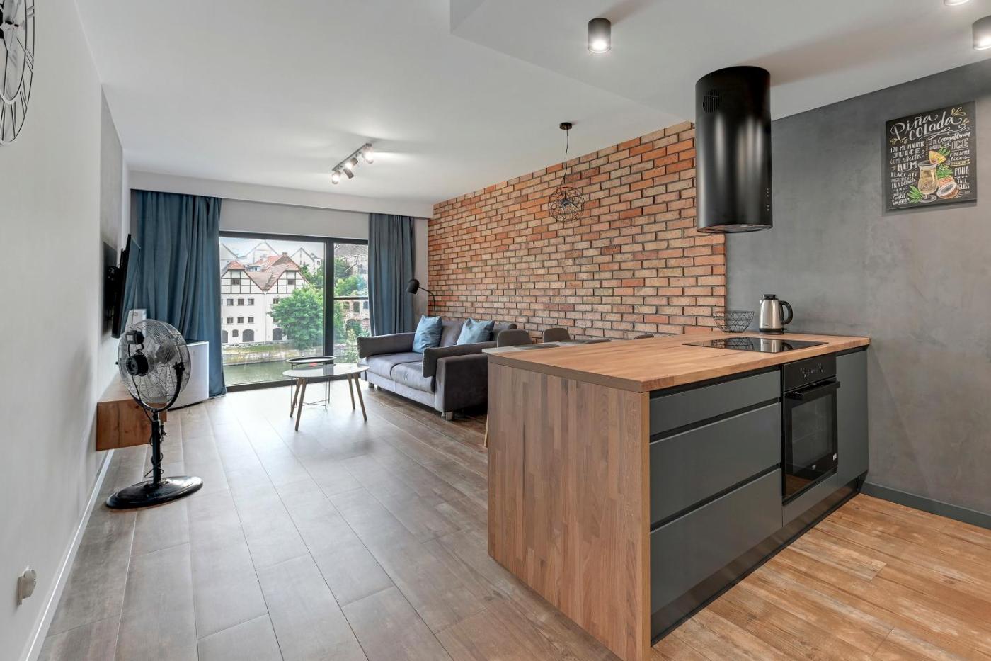 Apartament z 1 sypialnią. This air-conditioned apartment includes 1 living room, 1 separate bedroom and 1 bathroom with a shower. In the well-equipped kitchen, guests will find a stovetop, a refrigerator, a dishwasher and kitchenware. The apartment offers a flat-screen TV with satellite channels, a washing machine, a tea and coffee maker, a seating area as well as river views. The unit has 2 beds. Apartament - 6 osobowy. Powierzchnia pokoju ok.: 52 mkw. ;