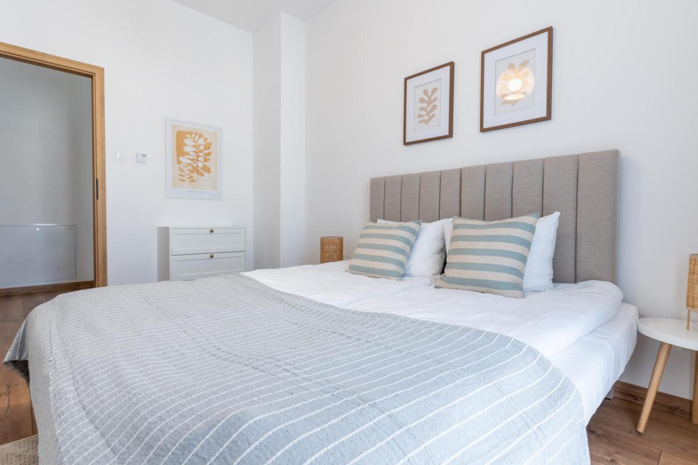 Apartament z 1 sypialnią. Featuring a private entrance, this air-conditioned apartment consists of 1 living room, 1 separate bedroom and 1 bathroom with a bath or a shower and a hairdryer. Meals can be prepared in the kitchenette, which is equipped with a stovetop, a refrigerator, a dishwasher and kitchenware. Boasting a terrace with city views, this apartment also provides a washing machine and a flat-screen TV with streaming services. The unit offers 3 beds. Apartament - 4 osobowy. Powierzchnia pokoju ok.: 45 mkw.