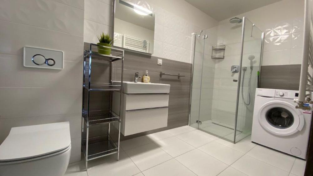 Apartament. The private pool is a top feature of this apartment. Boasting a private entrance, this apartment comes with 1 living room, 1 separate bedroom and 1 bathroom with a shower and a hairdryer. In the well-equipped kitchen, guests will find a stovetop, a refrigerator, a dishwasher and kitchenware. Featuring a terrace, this apartment also features a washing machine, a tea and coffee maker and a flat-screen TV. The unit has 2 beds. Apartament - 4 osobowy. Powierzchnia pokoju ok.: 40 mkw.