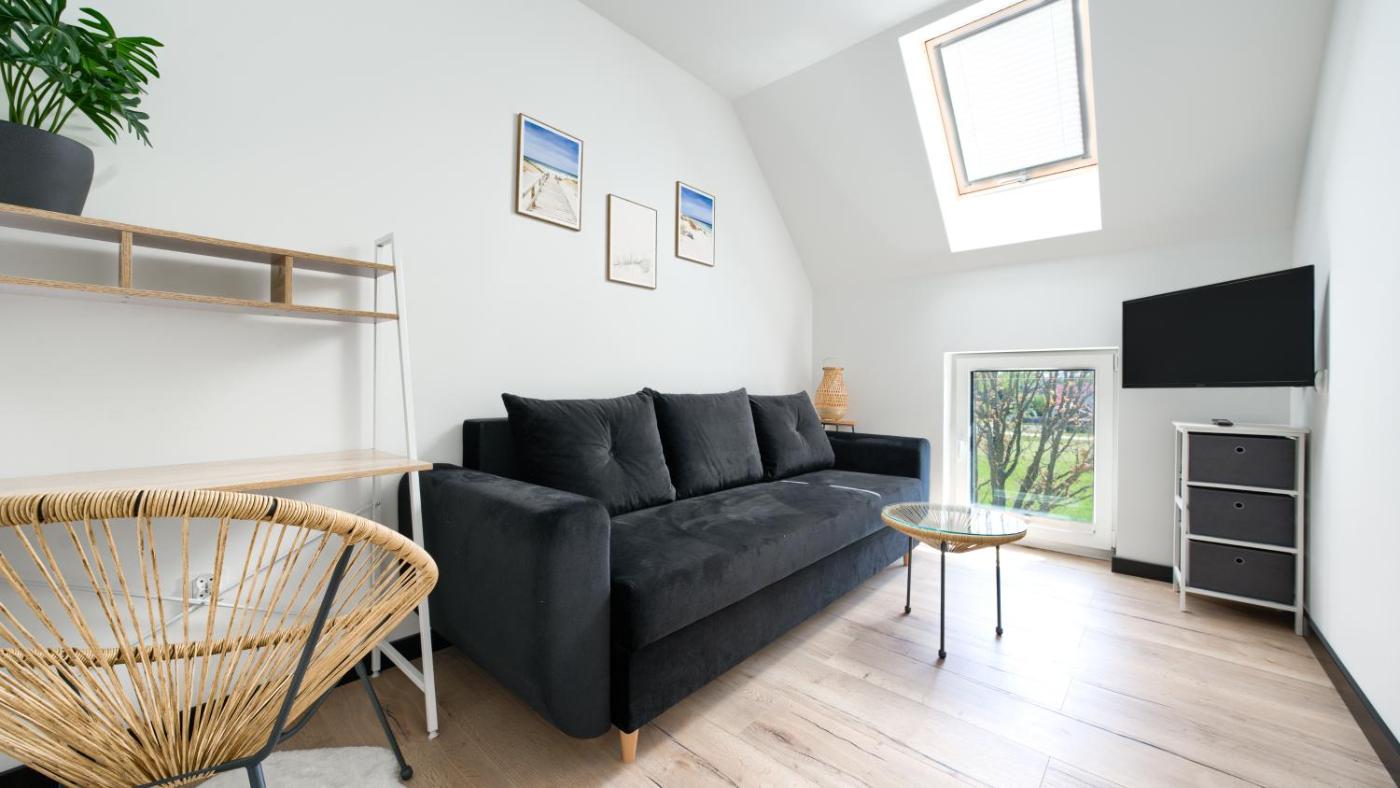 Oferta apartamentu obejmuje sypialnię (1), salon, aneks kuchenny z pełnym wyposażeniem, w tym lodówką i ekspresem do kawy, a także łazienkę (1) z prysznicem oraz suszarką do włosów. W apartamencie zapewniono ręczniki i pościel.