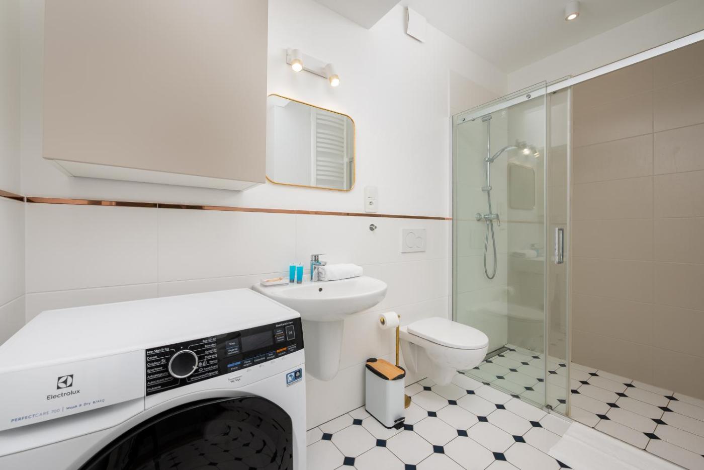 Apartament z 2 sypialniami. This spacious apartment includes 1 living room, 2 separate bedrooms and 2 bathrooms with a bath or a shower and free toiletries. Meals can be prepared in the kitchenette, which is fitted with a stovetop, a refrigerator, a dishwasher and kitchenware. The apartment offers a washing machine, a private entrance, a seating area, a dining area and a flat-screen TV. The unit has 4 beds. Apartament - 5 osobowy. Powierzchnia pokoju ok.: 82 mkw.